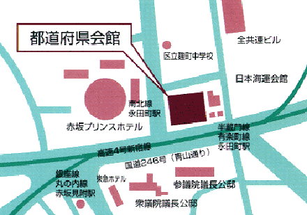 地下鉄 南北線 [永田町駅」9番B出口から地下鉄連絡通路を経て徒歩約1分