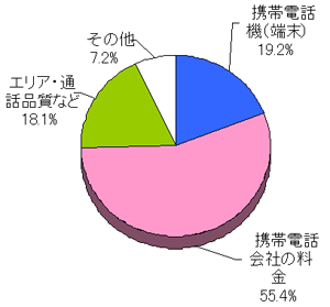 帯電話機」の19.2%、「携帯電話会社のネットワーク(エリア・